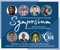 The AIS Entrepreneurial Innovation Fellowship Symposium highlighting the research ventures of the program’s first cohort will be held via Zoom on September 14, 2023 (9:00 – 10:30 am Eastern / 1:00 – 2:30 pm UTC). The session will feature presentations from: